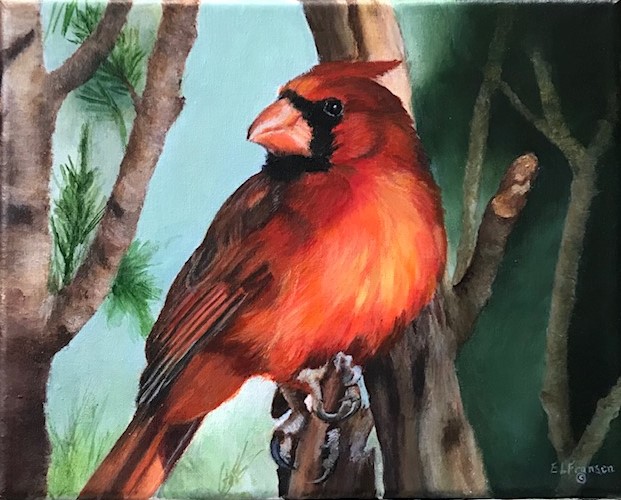 Jim Ellis, who I met through good friends, Pam and Dana Crandell, graciously allowed me to paint this cardinal from one of his photographs.