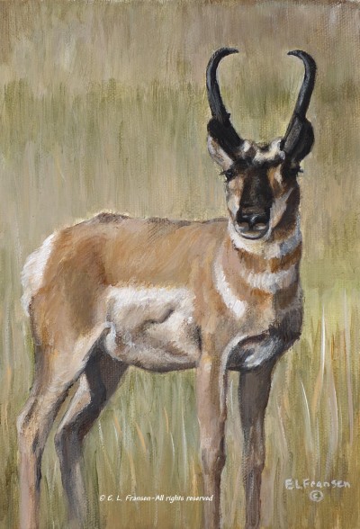 This was my first antelope painting. I painted the original in September of 2009 while I was Artist in Residence at the Old Faithful Inn in Yellowstone National Park. A gentleman from overseas purchased the original.