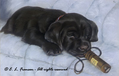 A chocolate lab puppy “calling” you.