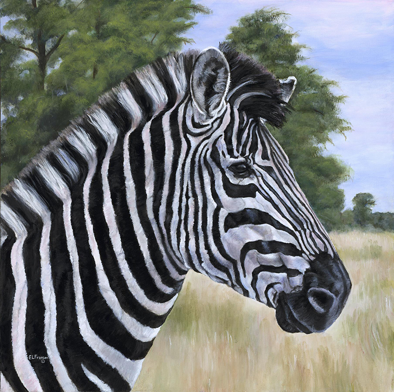 Here is one of my paintings from an African series that I began some time ago. It is titled, “Manely Stripes.” The original, painted in the medium of acrylic, is on a 24″ w x 24″ h wrap around canvas.