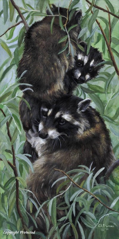 3 Little Raccoons playing hide & seek.