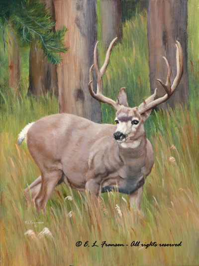 Muley is a 12″ w x 16″ h acrylic painting. Available as a Giclee’ print on Pro Satin paper.