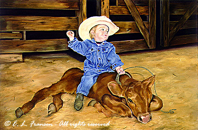He is out of the chute and going for the win! You can be a winner, too, with this fifth image in the “Little Cowboy” Series. Larger in size than the others in the series.