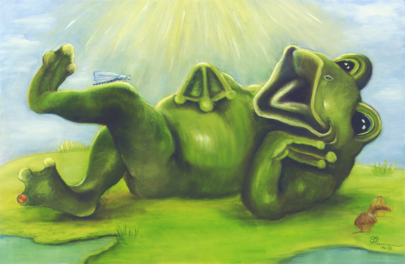 Rest in Blessings in Thee-the 2nd frog painting in memory of a dear friend. Her name was Penny. See if you can spot the penny in this painting.