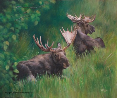 This painting appropriately titled “Settled In” was chosen as the winning piece at the 2011 Petroleum Club Art Contest in Casper, WY.