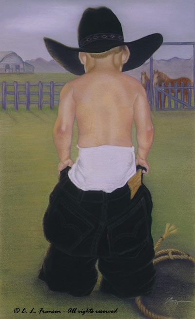 The fourth in the “Little Cowboy” series. He’s way too big for those britches! But he had to try them. Be sure to check out the other four in this series.