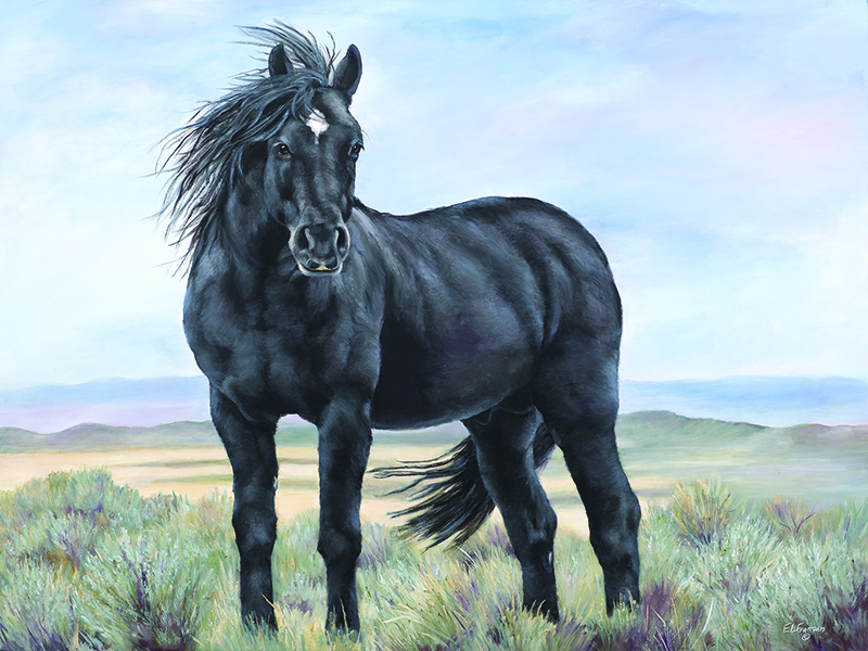 A black stallion in the wilds of Wyoming. This would make such a great centerpiece in a home above a fireplace, a board room or lobby of a business.